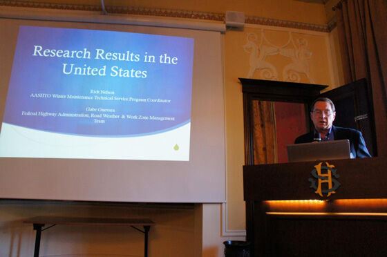As for the other presentations, Mr. Horst Badelt from Bast in Germany presented the model of automatic salt spreading in line with the temperature measured by contactless sensors. Also, Mr. Bine Pengal, PIARC Member of Slovenia, introduced the activities of CEDR about winter maintenance standards and finally Rick Nelson, English Secretary of TC2.4, reported the progress of researches for winter service, which were conducted in collaboration of several associations in the U.S.