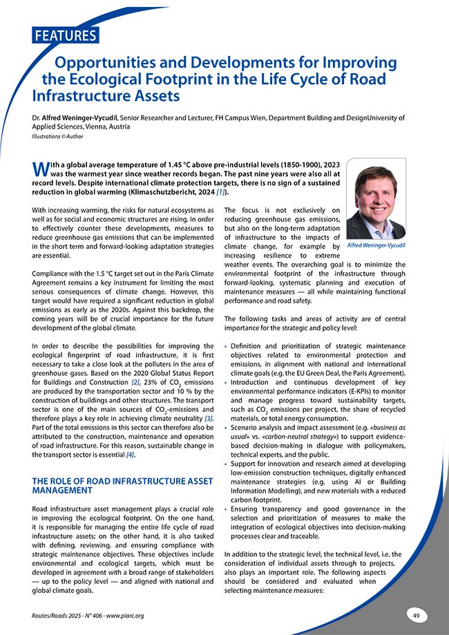 Opportunities and Developments for Improving the Ecological Footprint in the Life Cycle of Road Infrastructure Assets