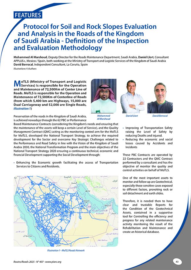 Protocol for Soil and Rock Slopes Evaluation and Analysis in the Roads of the Kingdom of Saudi Arabia - Definition of the Inspection and Evaluation Methodology