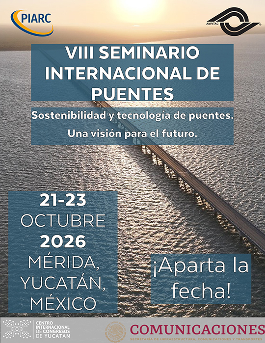 Octubre 21-23, 2026 | VIII Seminario Internacional des Puentes "Sostenibilidad y tecnologia de puentes. Una vision para el futuro" | Merida (México) |