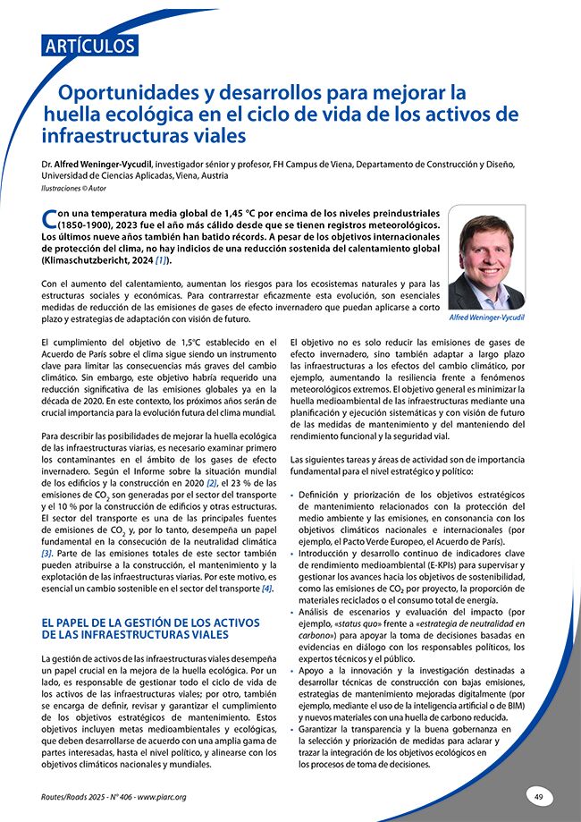 Oportunidades y desarrollos para mejorar la huella ecológica en el ciclo de vida de los activos de infraestructuras viales