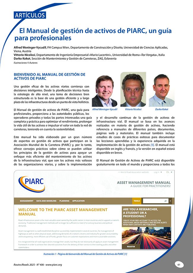 El Manual de gestión de activos de PIARC, un guía para profesionales