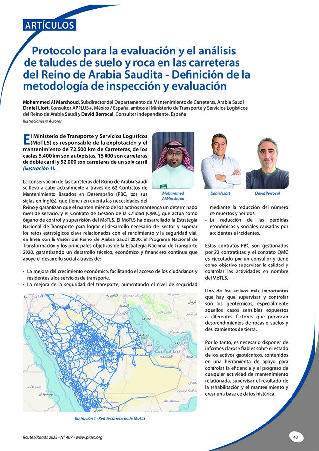 Protocolo para la evaluación y el análisis de taludes de suelo y roca en las carreteras del Reino de Arabia Saudita - Definición de la metodología de inspección y evaluación