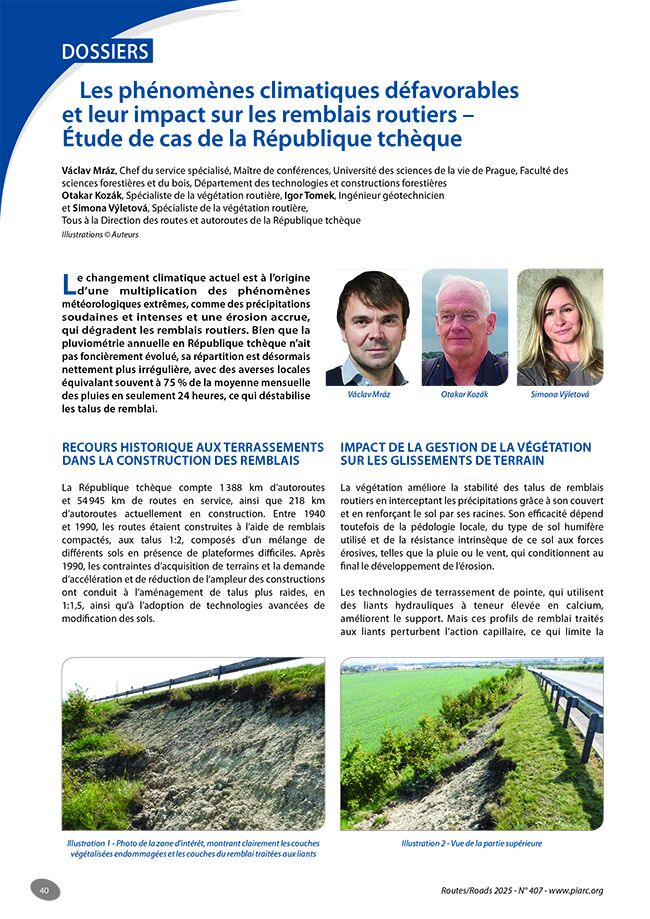 Les phénomènes climatiques défavorables et leur impact sur les remblais routiers – étude de cas de la République tchèque